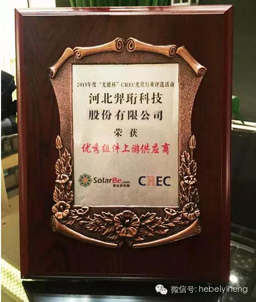 2015年11月5日,由solarbe索比光伏網(wǎng)和《光能雜志》共同主辦的 2015年“光能杯”CREC年度頒獎(jiǎng)典禮在無錫盛大舉行,河北羿珩科技股份有限公司(以下簡稱“羿珩科技”)榮獲“優(yōu)秀組件上游供應(yīng)商”稱號。本年度"光能"杯光伏行業(yè)獎(jiǎng)評活動(dòng)吸引了中國光伏領(lǐng)域上百家重量級企業(yè)的積極參與,以樹立行業(yè)標(biāo)桿并推動(dòng)整個(gè)行業(yè)健康理性發(fā)展為目標(biāo)。