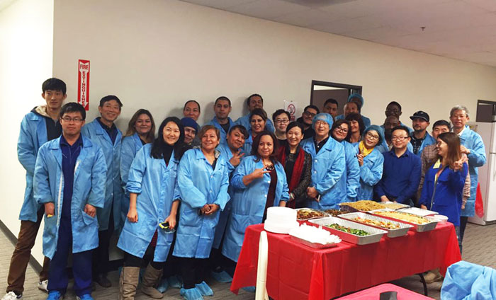 “叮叮當(dāng),叮叮當(dāng),鈴兒響叮當(dāng)……”伴隨著清脆的鈴聲,到處都彌漫著歡樂喜慶的圣誕氣氛,除了絢麗的圣誕樹和豐富的禮物,圣誕所傳遞出的平安、喜樂、溫暖的氛圍也影響著很多人的生活。 無論是在西方還是東方,最重要的部分就是與家人圍坐在餐桌旁,共享一頓豐盛美味的圣誕大餐,在sunspark工廠里,來自大洋彼岸的中國.河北羿珩科技有限公司的同事,正與外國朋友交往體驗異國佳節(jié),共享原汁原味的圣誕大餐。