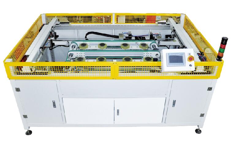 層壓完成的組件傳入后,將組件頂起一定的高度,設(shè)備自動將組件四邊廢邊同時切掉,完成后組件落下、規(guī)整后傳入下一工位。