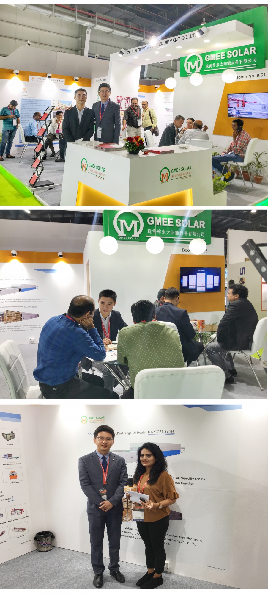 2018年9月18日至20日,河北羿珩科技有限責(zé)任公司(以下簡稱:羿珩科技)與其印度地區(qū)獨(dú)家代理珠海格米太陽能設(shè)備有限公司(以下簡稱:珠海格米),共同參加了2018年度印度國際可再生能源展。展會現(xiàn)場,來自印度及全球各地的組件客戶對羿珩科技推出的全自動疊焊機(jī)、雙層三腔全自動層壓機(jī)等一系列新產(chǎn)品表示極大興趣,紛紛駐足展位現(xiàn)場,并認(rèn)真交流、了解最新技術(shù)及新產(chǎn)品應(yīng)用。