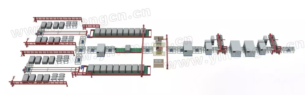 智能式全自動包裝生產(chǎn)線,智能式全自動包裝生產(chǎn)線,實(shí)現(xiàn)了整線包裝無人化,組件下料過程中的護(hù)角、分檔、包裝、叉托全套工序自動化,大幅提升組件包裝效率;同時具有運(yùn)行穩(wěn)定、精準(zhǔn),兼容性強(qiáng),可實(shí)現(xiàn)常規(guī)組件與雙玻組件下料后的批量裝箱及自動混包設(shè)計等獨(dú)特優(yōu)勢。