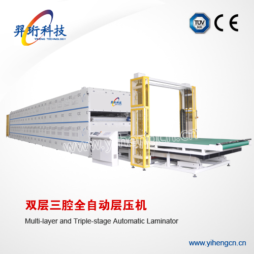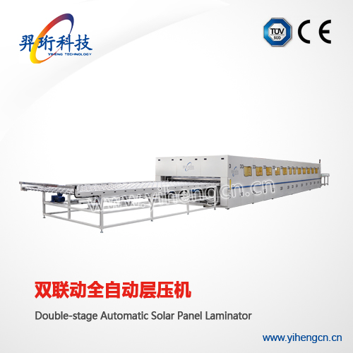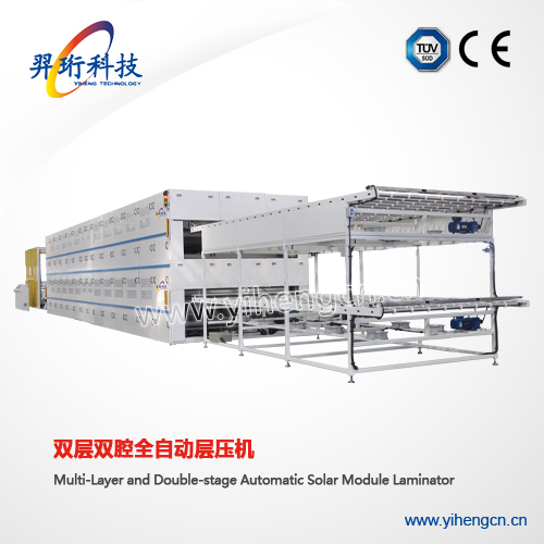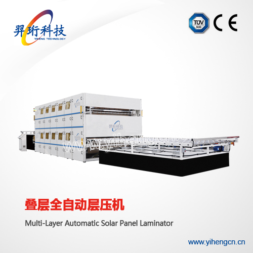 羿珩科技專利產(chǎn)品(發(fā)明名稱:疊層式層壓機(jī)。 專利號:ZL 2009 1 0075057.7)100MW自動流水線專用高效疊層全自動層壓機(jī);