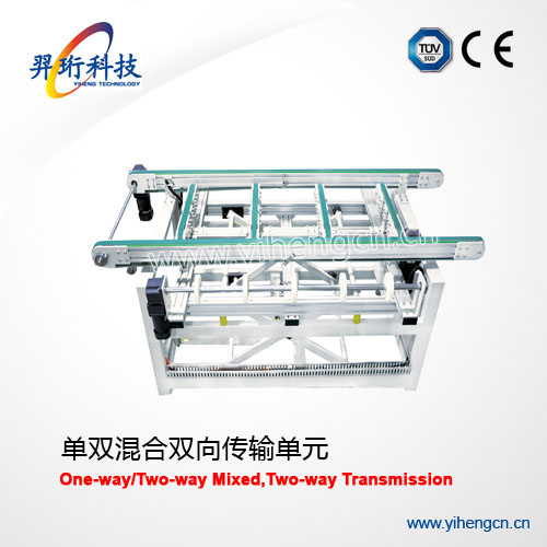 自動完成電池板由橫向傳送到縱向傳送或由縱向傳送到橫向傳送的轉(zhuǎn)變,也可讓電池板某一方向通過,方便進(jìn)行下一環(huán)節(jié)操作。